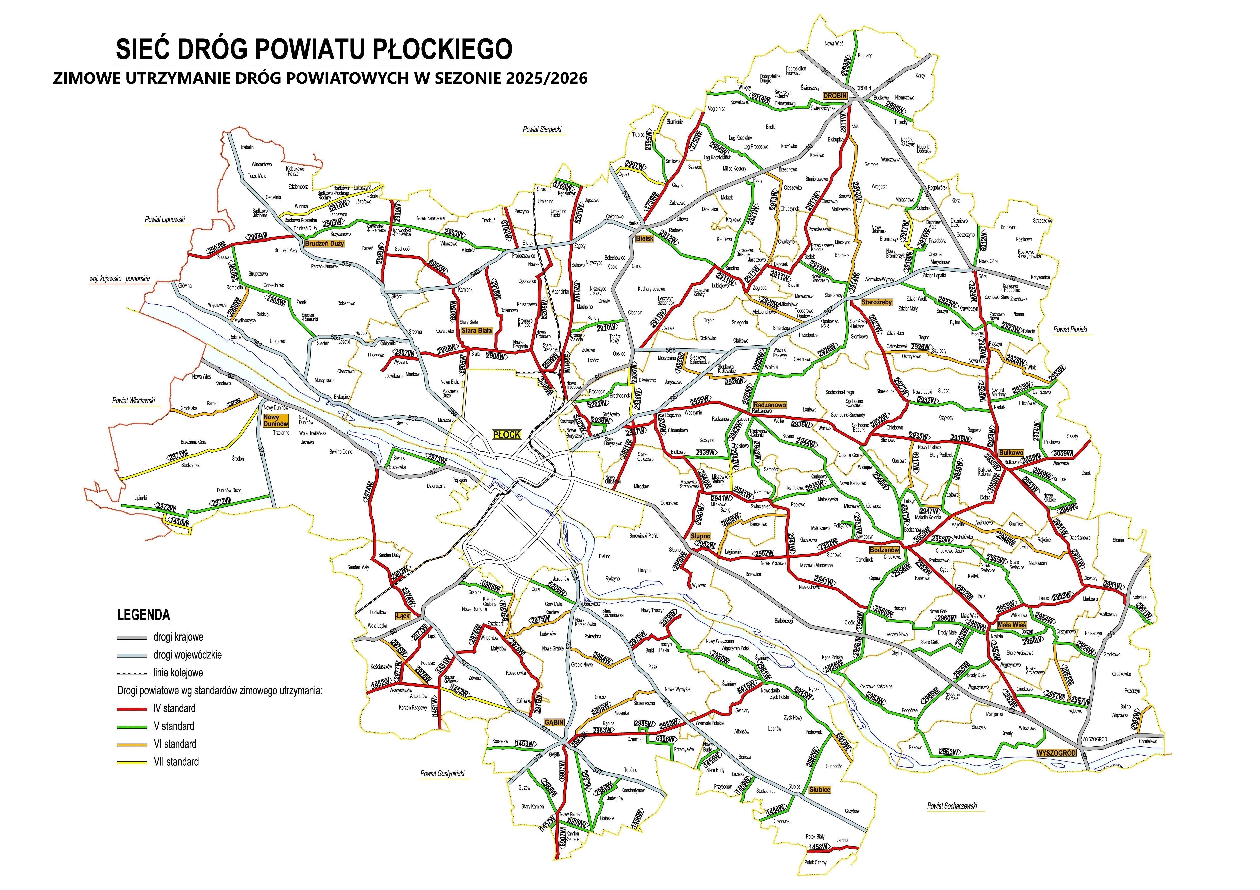 Sieć dróg powiatowych, których łączna długość wynosi 722,7 km, została podzielona na trzy standardy zimowego utrzymania